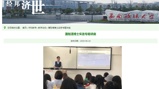 2019年5月31日下午,重慶夼旗科技有限公司蒲剛清副總經理應邀在西政為經濟統計學專業2017級學生進行了一場精彩的實務講座。講座由經濟學教研室主任、經濟統計學專業負責人汪毅霖副教授主持。蒲剛清博士師從我國著名經濟學家李曉西教授,在科技軟件領域也有多年的從業經驗。蒲剛清博士在講座中為同學們講解了行為經濟學實驗平臺、大數據平臺等相關軟件知識,也分享了在職業規劃方面的感悟,取得了良好的效果。本次講座是經濟統計學專業2019年的第1次實務講座,對提高學生們的職業技能和完善學生們的擇業觀念起到了積極的作用。